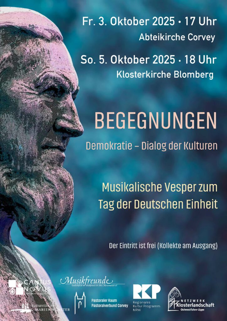 17:00 Uhr – feierliche Vesper in der Abteikirche Corvey, u. a. mit der MarienKantorei Lemgo (Ltg. Volker Jänig) und der Gregorianik-Schola Marienmünster-Corvey